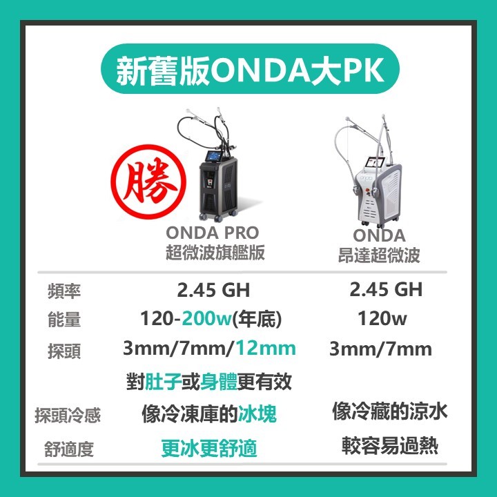 這台就是全新升級的ONDA PRO超微波旗艦版~比之前Rita打舊版時舒服很多,效果也更明顯喲~!